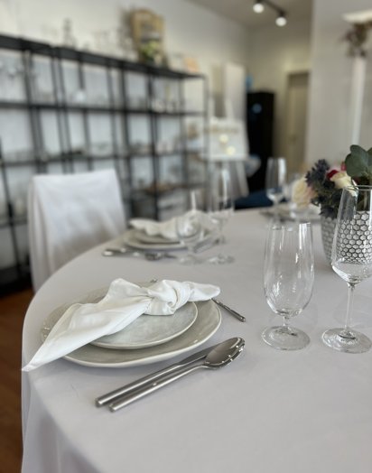Vor Ort habe ich zahlreiche Deko-Elemente, wie Tischdecken, Servietten, Kerzenhalter, Kerzen, Blumengestecke und, und, und … Damit können wir erste Versuche zur Umsetzung eurer Ideen starten oder neue Ideen entwickeln.